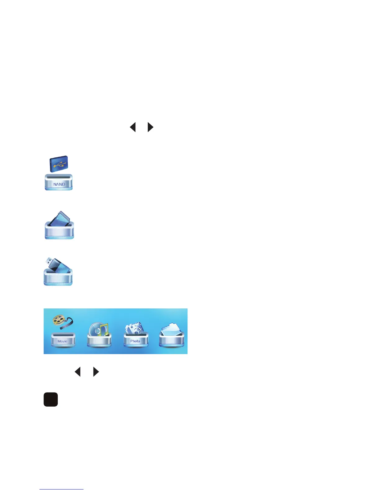 To play video files, press the or button to select the location of your files then press ‘OK’.