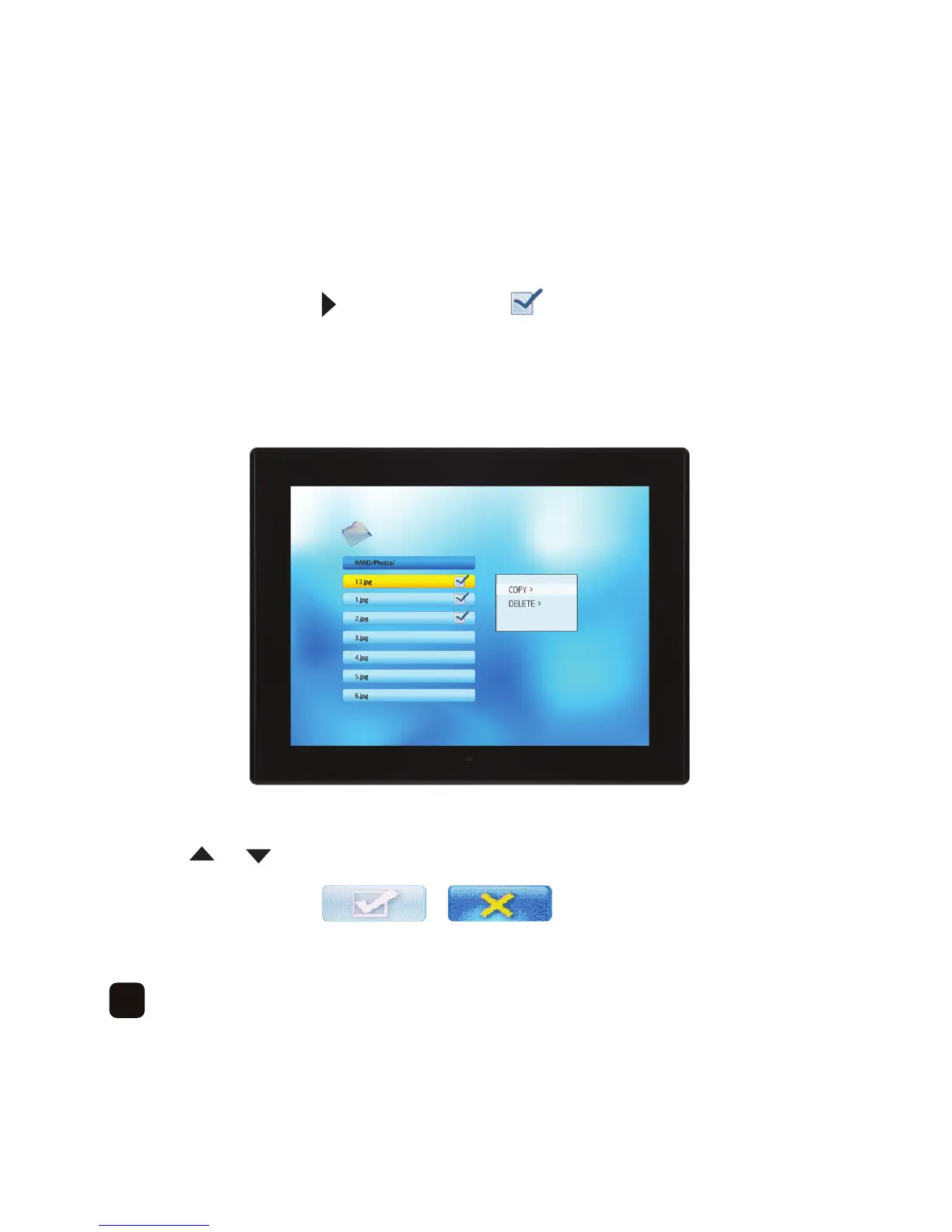To de-select a file press the button again and the icon will be removed.
