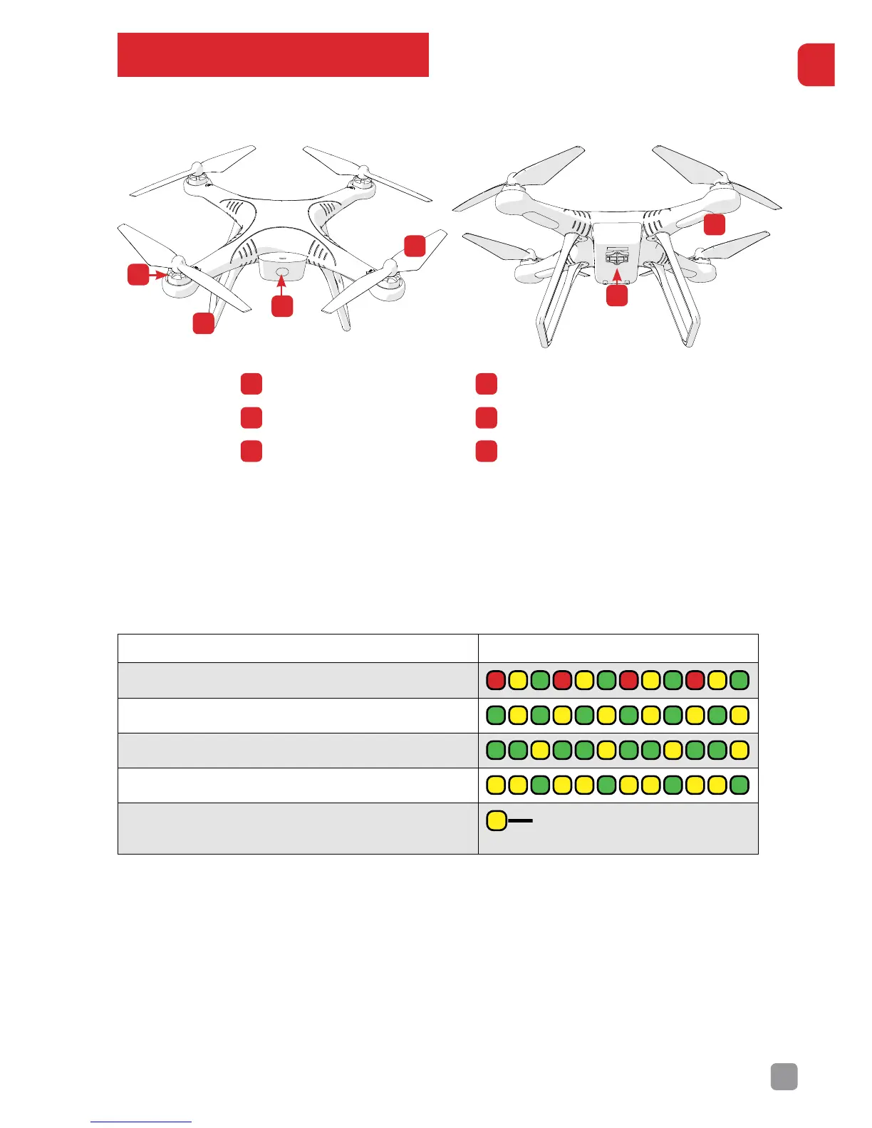 The LED lights also function as a Drone Health Warning System. You