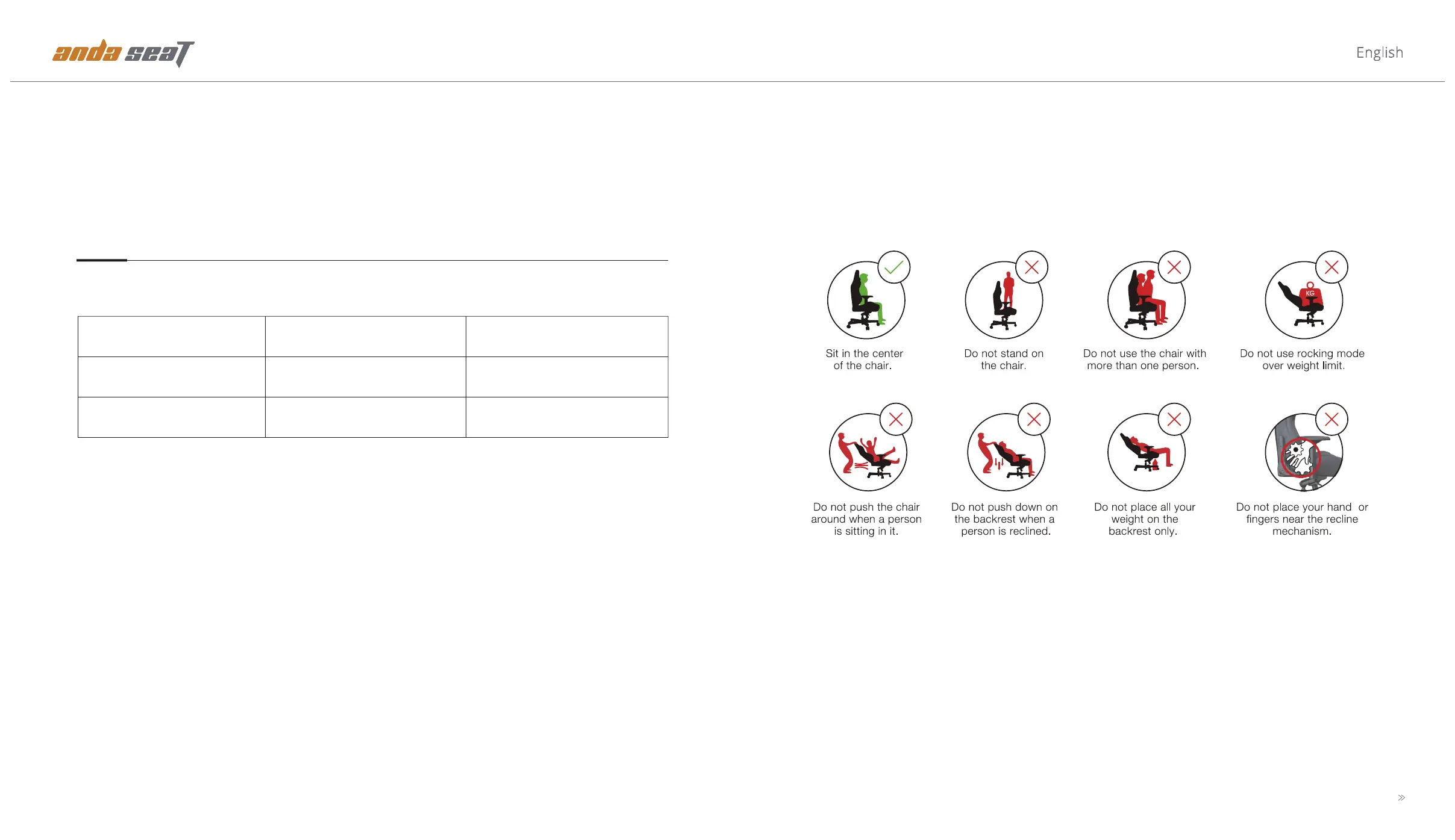 For warranty information, please visit Warranty & Return Policy – AndaSeat Help Center