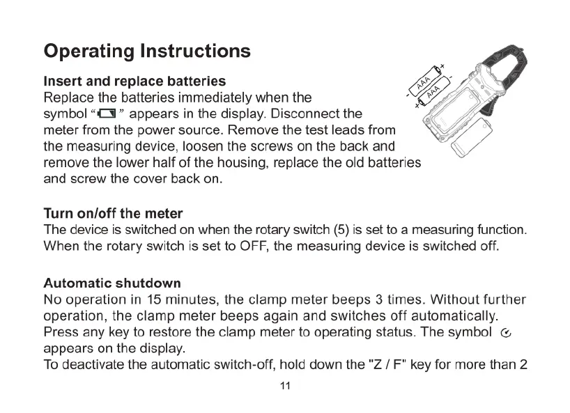 Kaiweets HT206D - Operating Instructions; Battery Replacement and Meter Power; Automatic Shutdown Feature