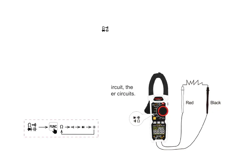 4� Then place the test probes in contact with the points at which the resistance must be