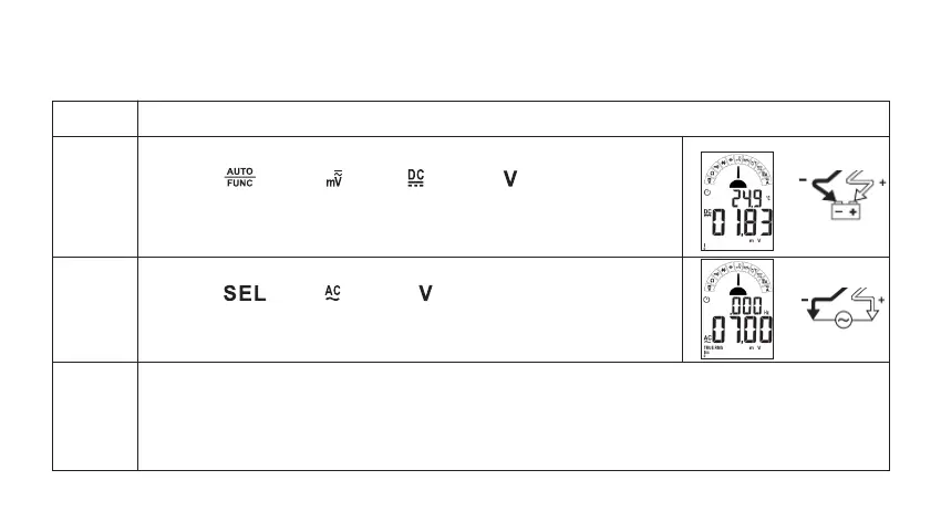 • Do not use the AC voltage test function to test DC voltage and vice versa.