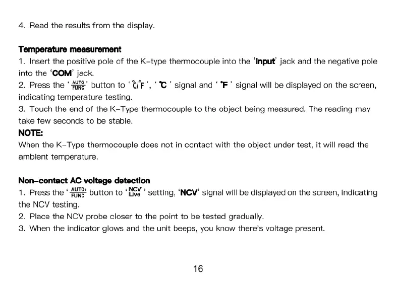 Kaiweets KM601s - Temperature and Voltage Detection; Non-contact AC Voltage Detection