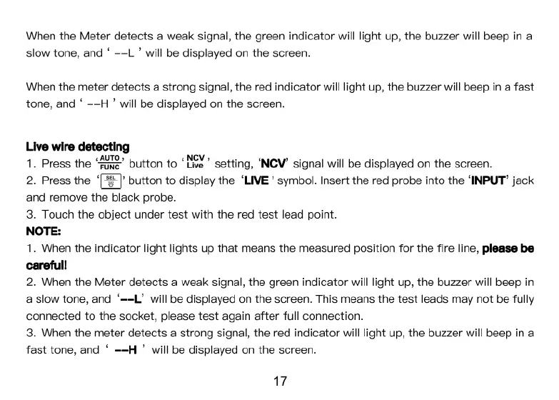 Kaiweets KM601s - Live Wire Detecting; Live Wire Detection Procedure