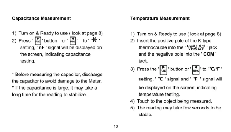 Kaiweets ST600X - Manual Capacitance Measurement; Manual Temperature Measurement