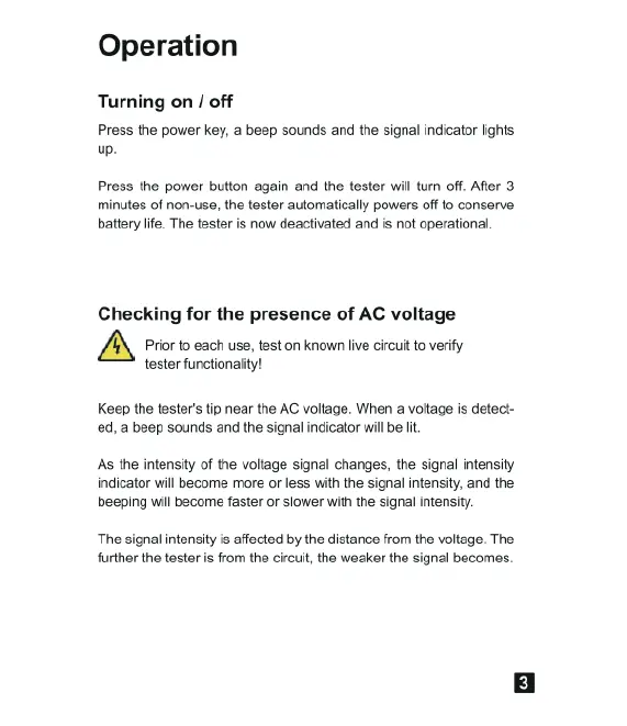 Kaiweets VT200 - Operation Guide; Powering On and Off; Detecting AC Voltage