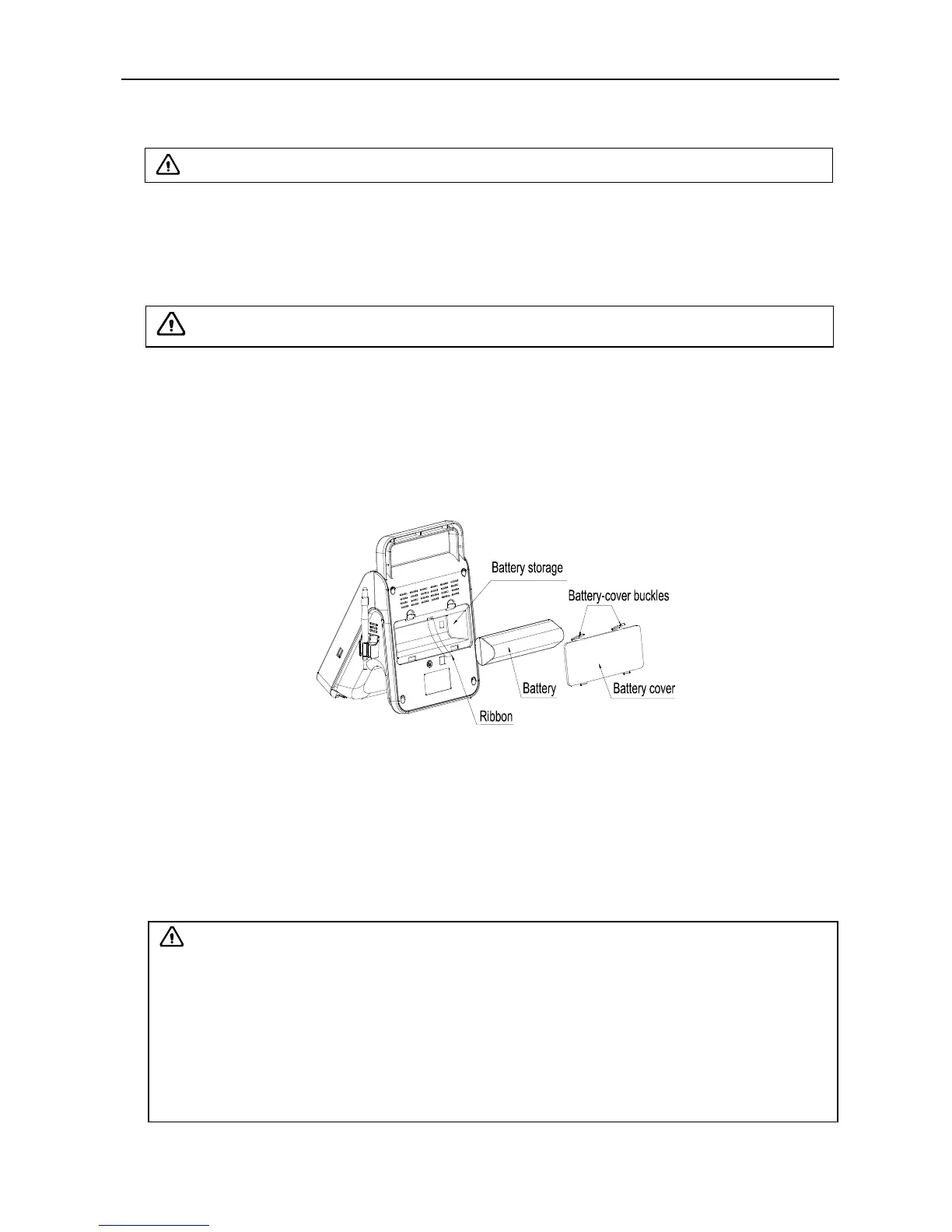 Hold down the battery-cover buckles above, and remove the battery cover, pull the ribbon and take