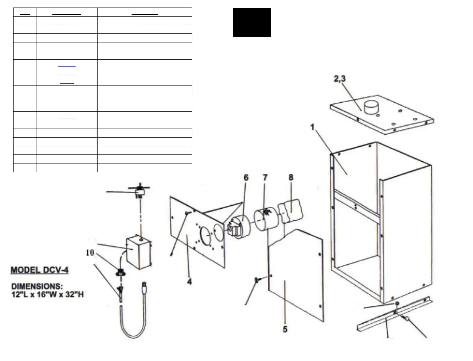 Item Part Number Description