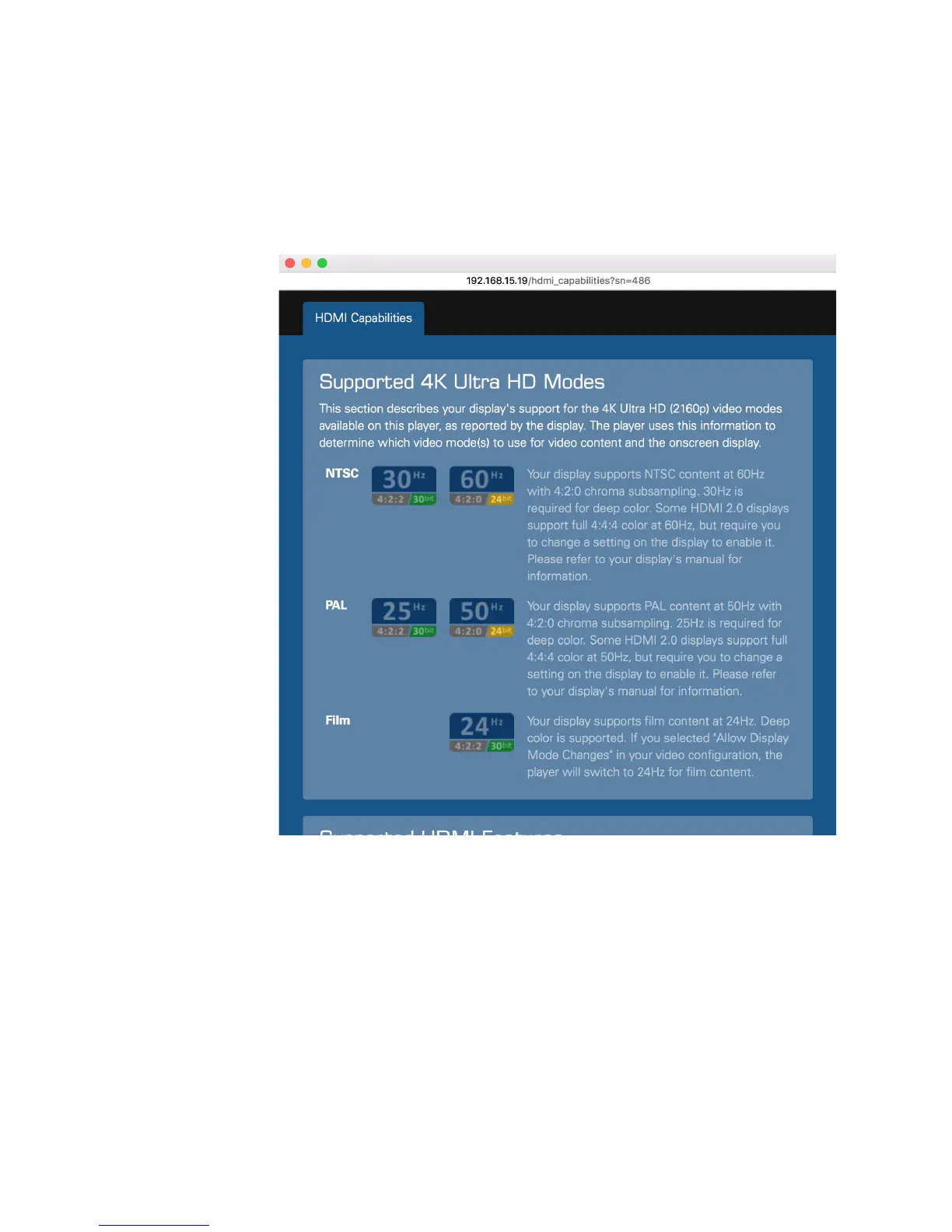 You will see a new “HDMI Capabilities” view, divided into three sections: