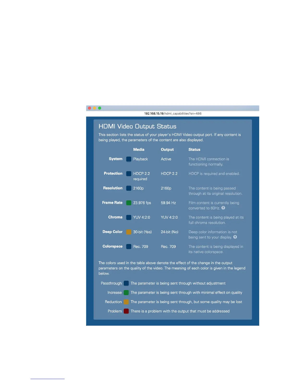 native format, if it is being up- or down-scaled, or if there is a problem. The