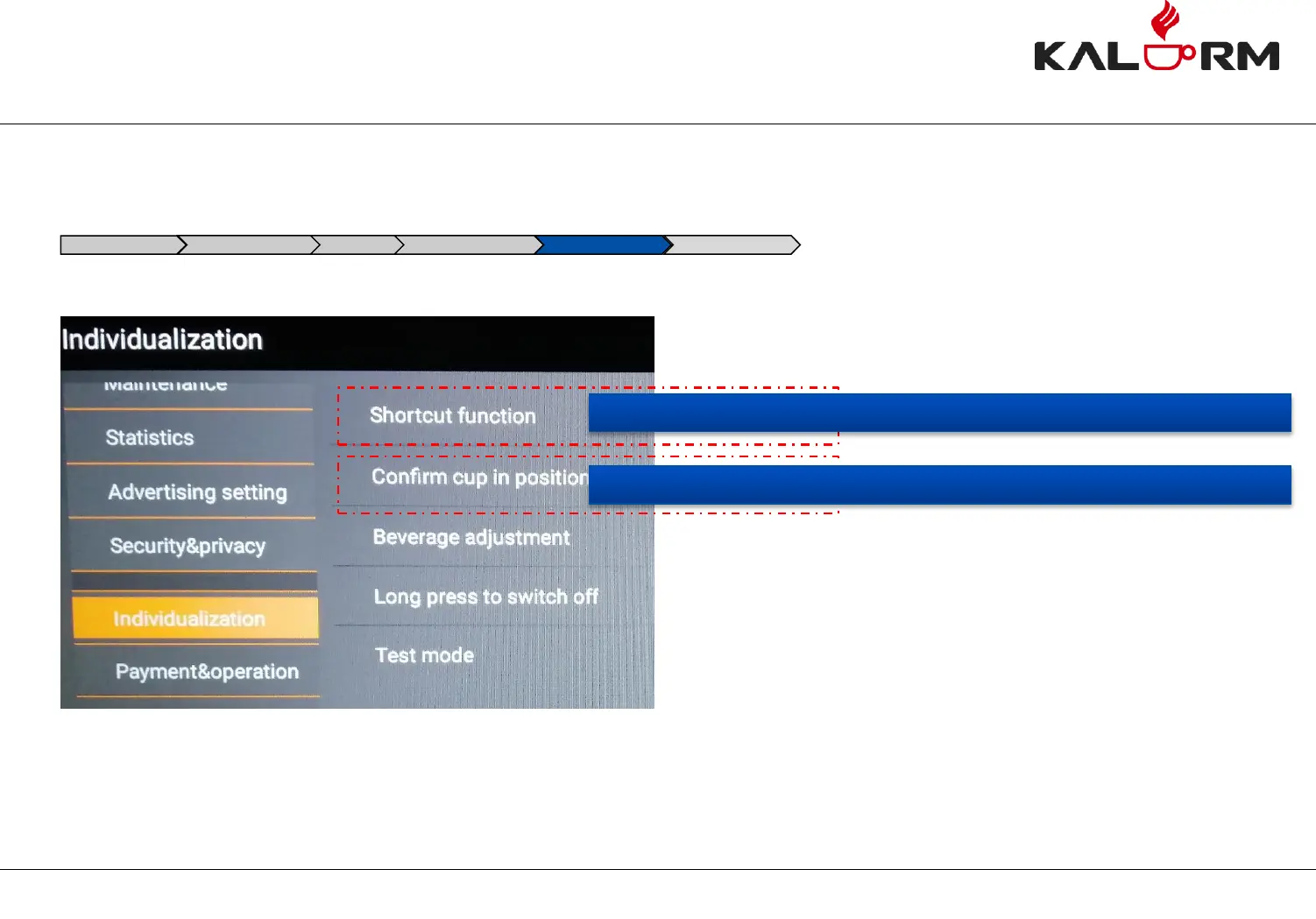 Shortcut function AD setting Security & privacy Individualization About equipment