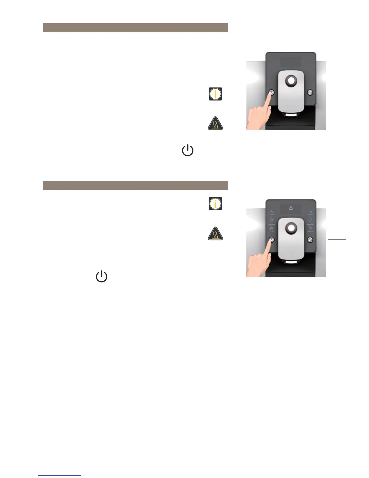 the coffee spout into the drip tray. Avoid touching spilt hot