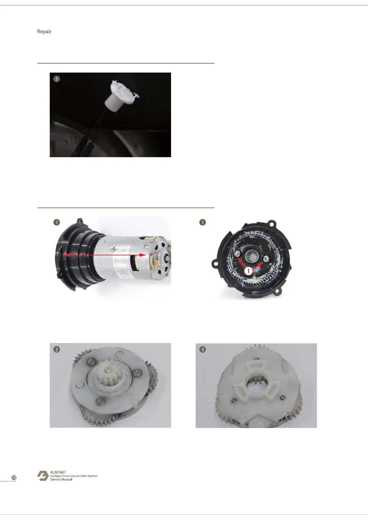 1. Assemble the grinder motor and gearbox together, and screw them tightly. The screw should be