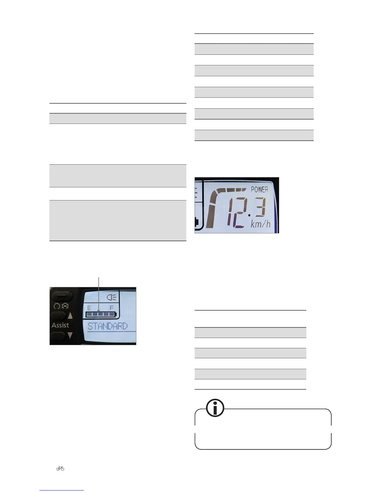 This indicator helps you save power when riding which