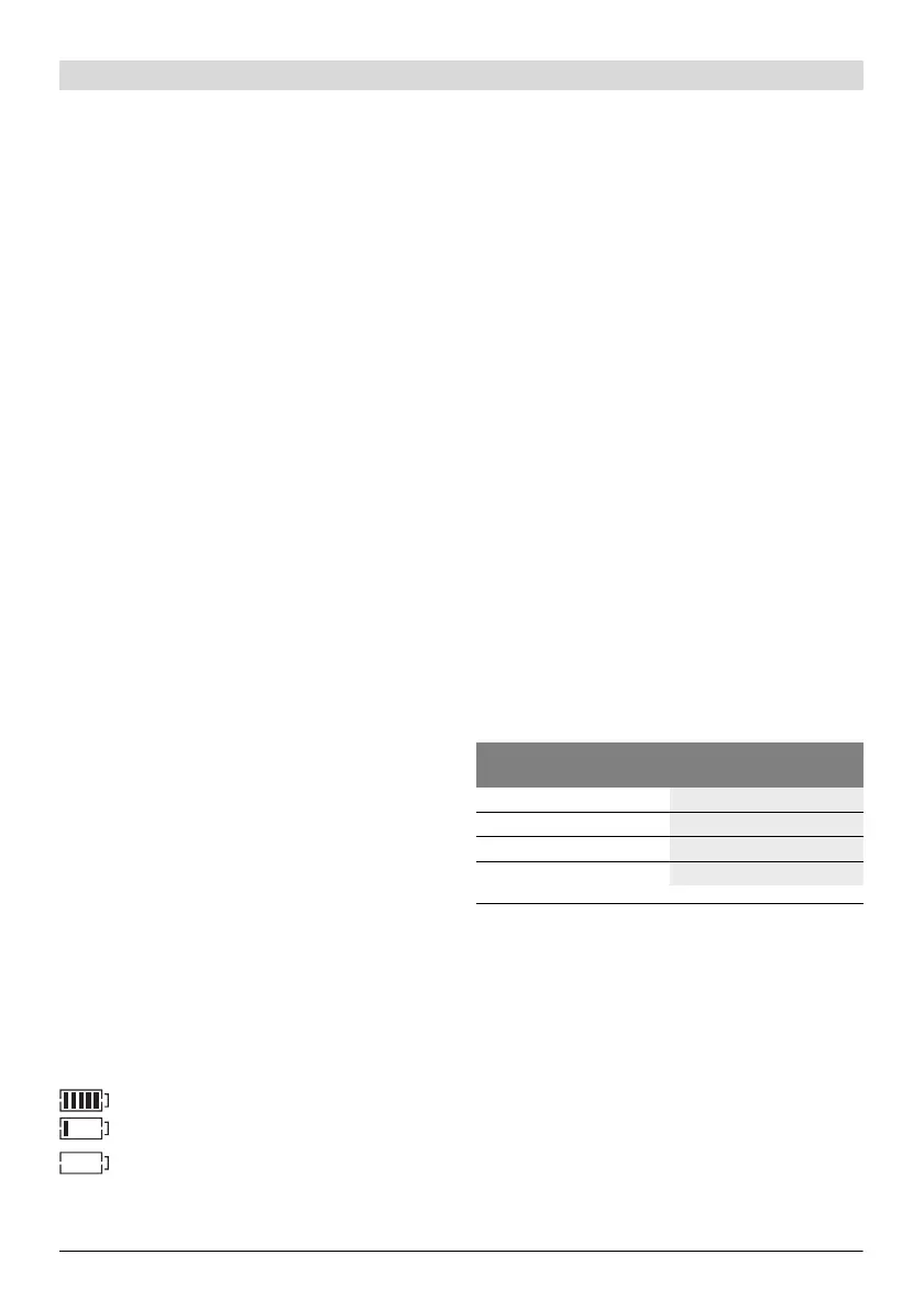 I indikatoren f tilsvarer hver strek på batterisymbolet ca. 20 %