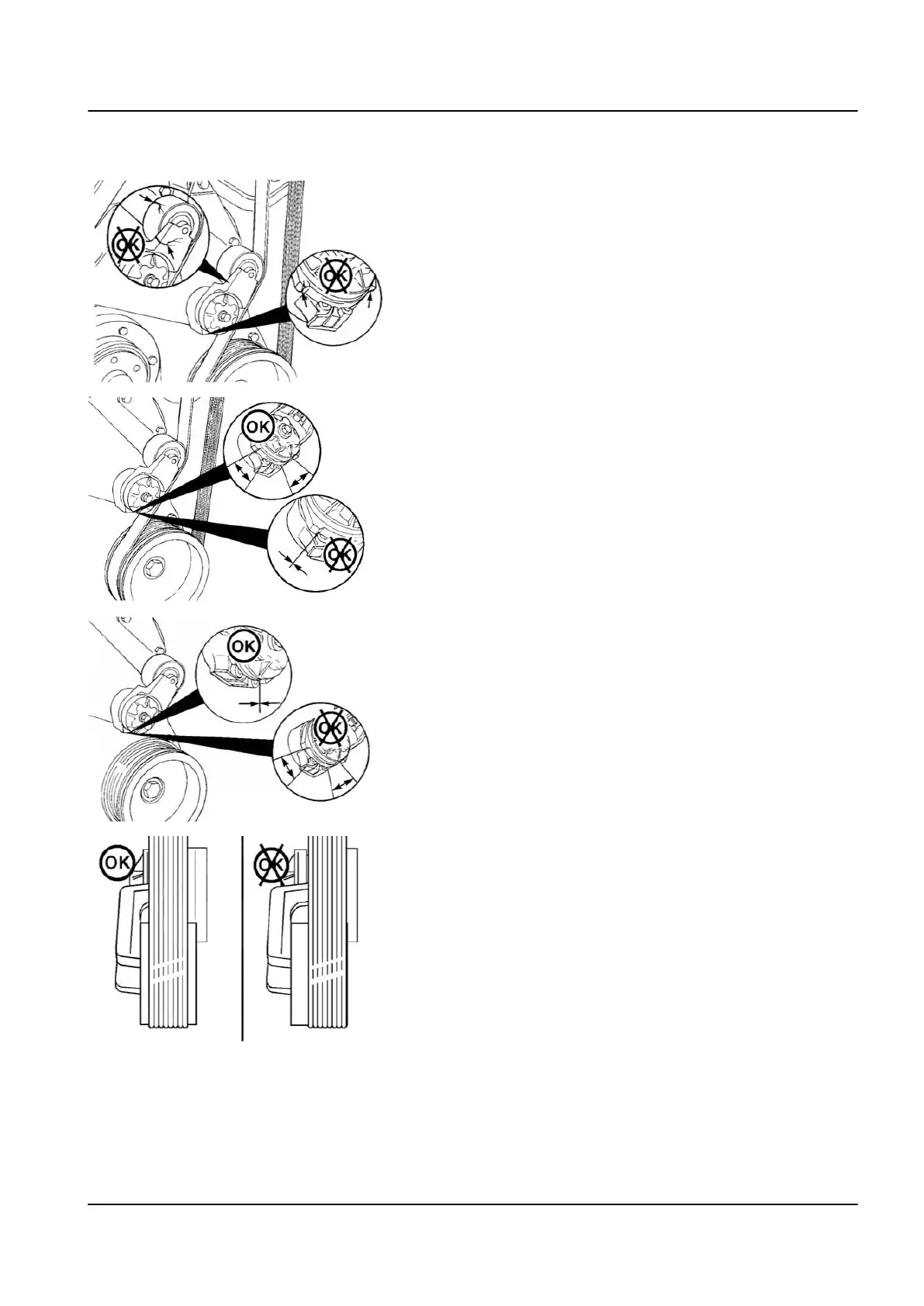 of, the pulley. Misaligned belts, either too far forward or back‐