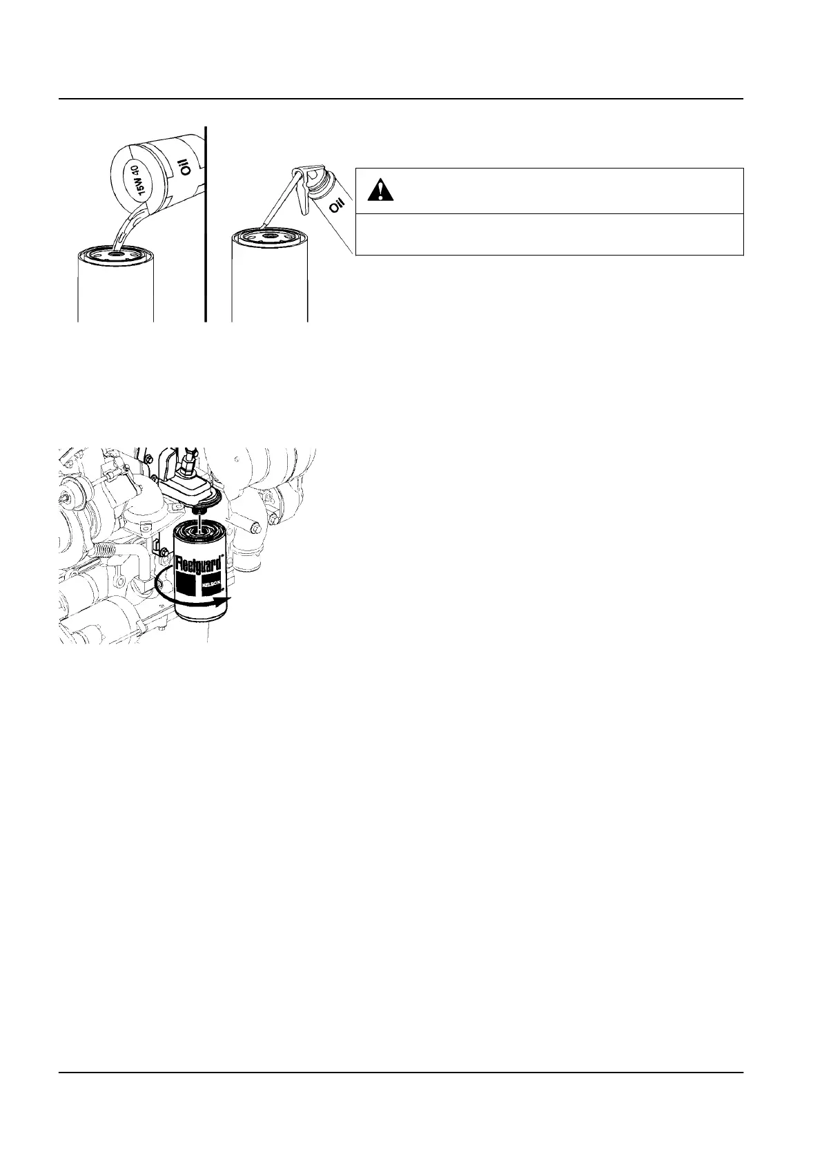 6 Install the filter onto the oil filter head. Tighten the filter until