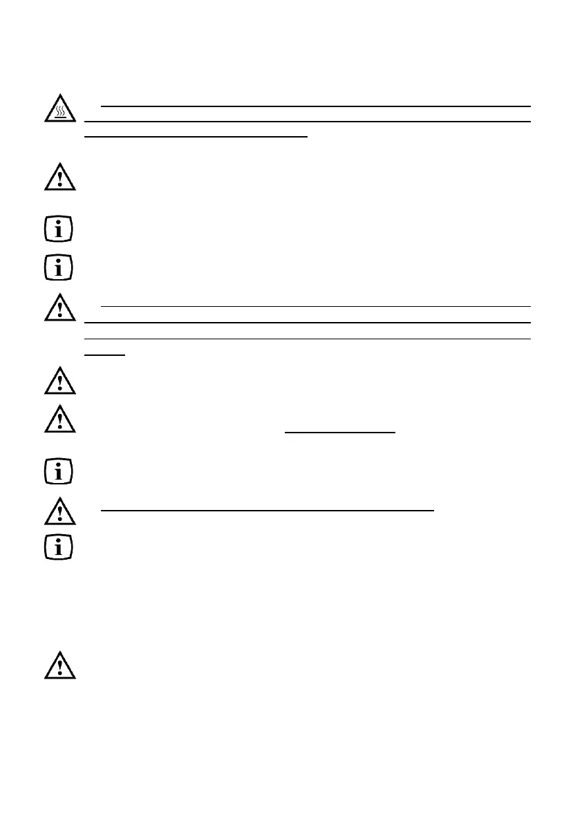 started or refuelled. Boiling holes have to be covered with rims or the heated