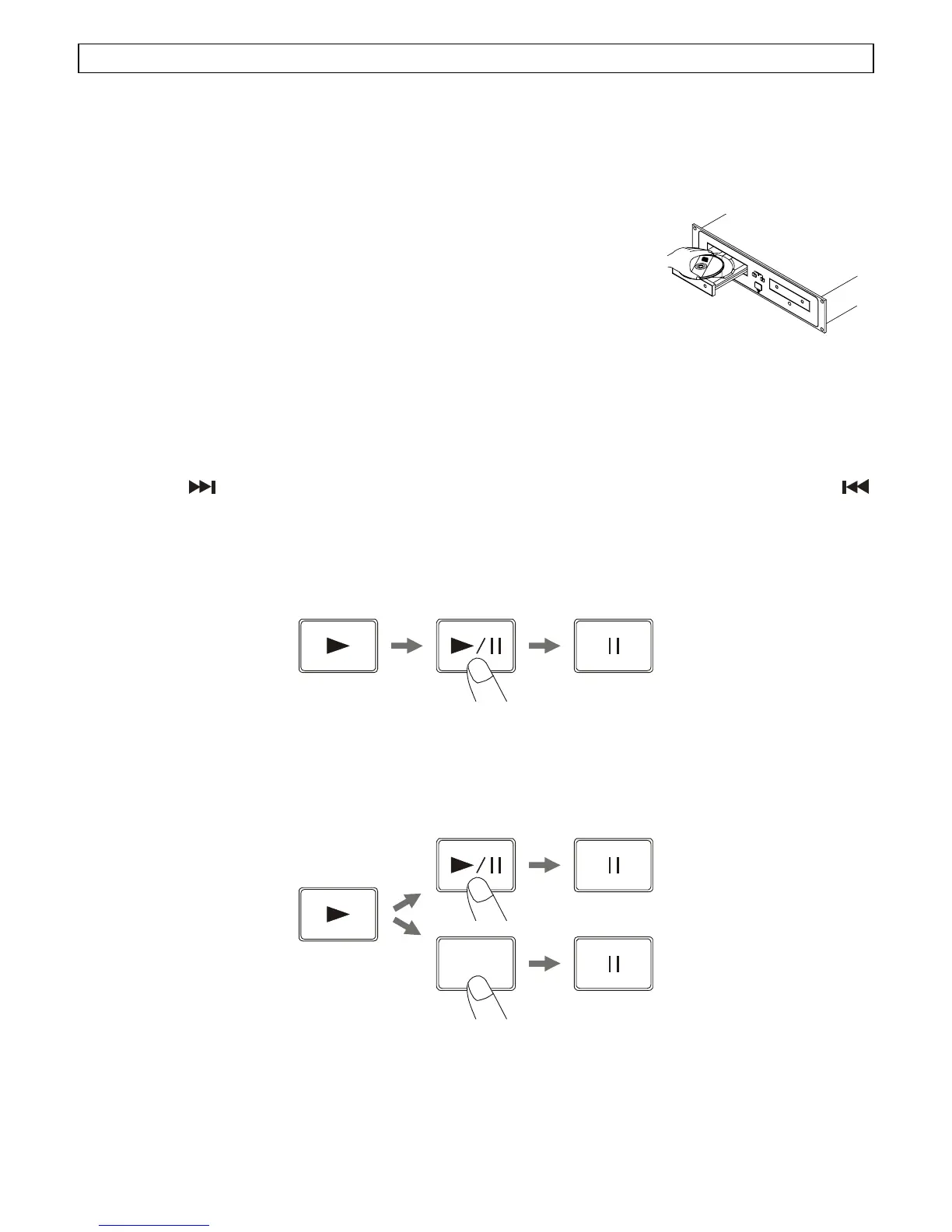 z Press the PLAY/PAUSE button during the pause or cue condition to start playback, the PLAY indicator lights.