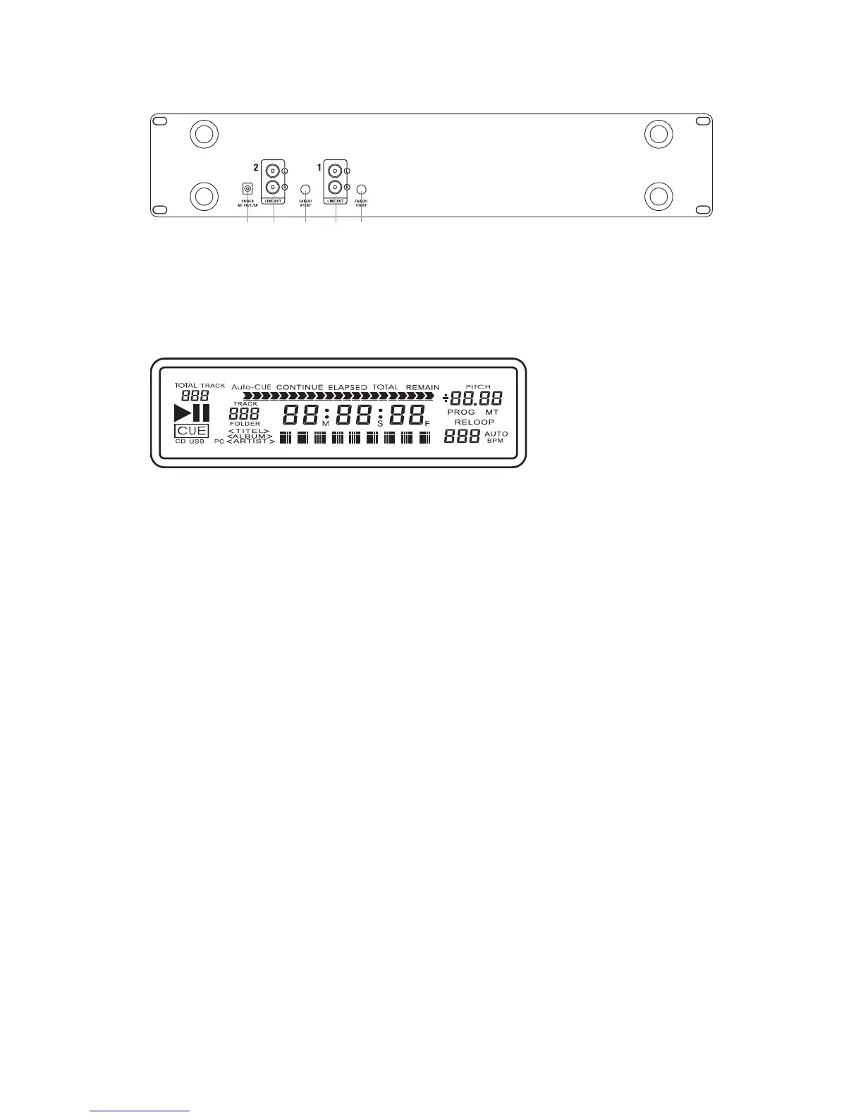 SINGLE (Auto CUE) Shows when the unit is set to play only one track.
