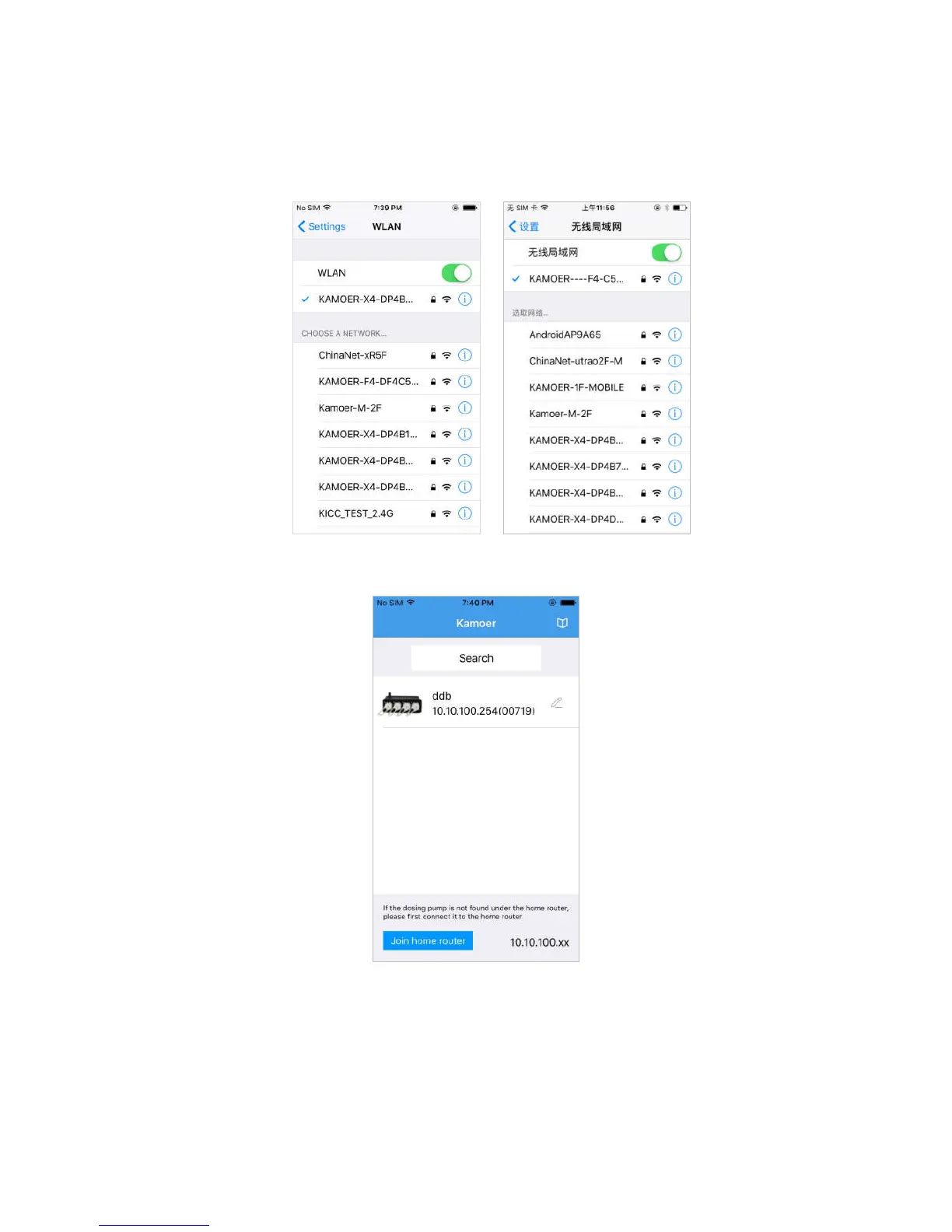 name begins with “KAMOER-F4” to connect in the WiFi list and the connection password