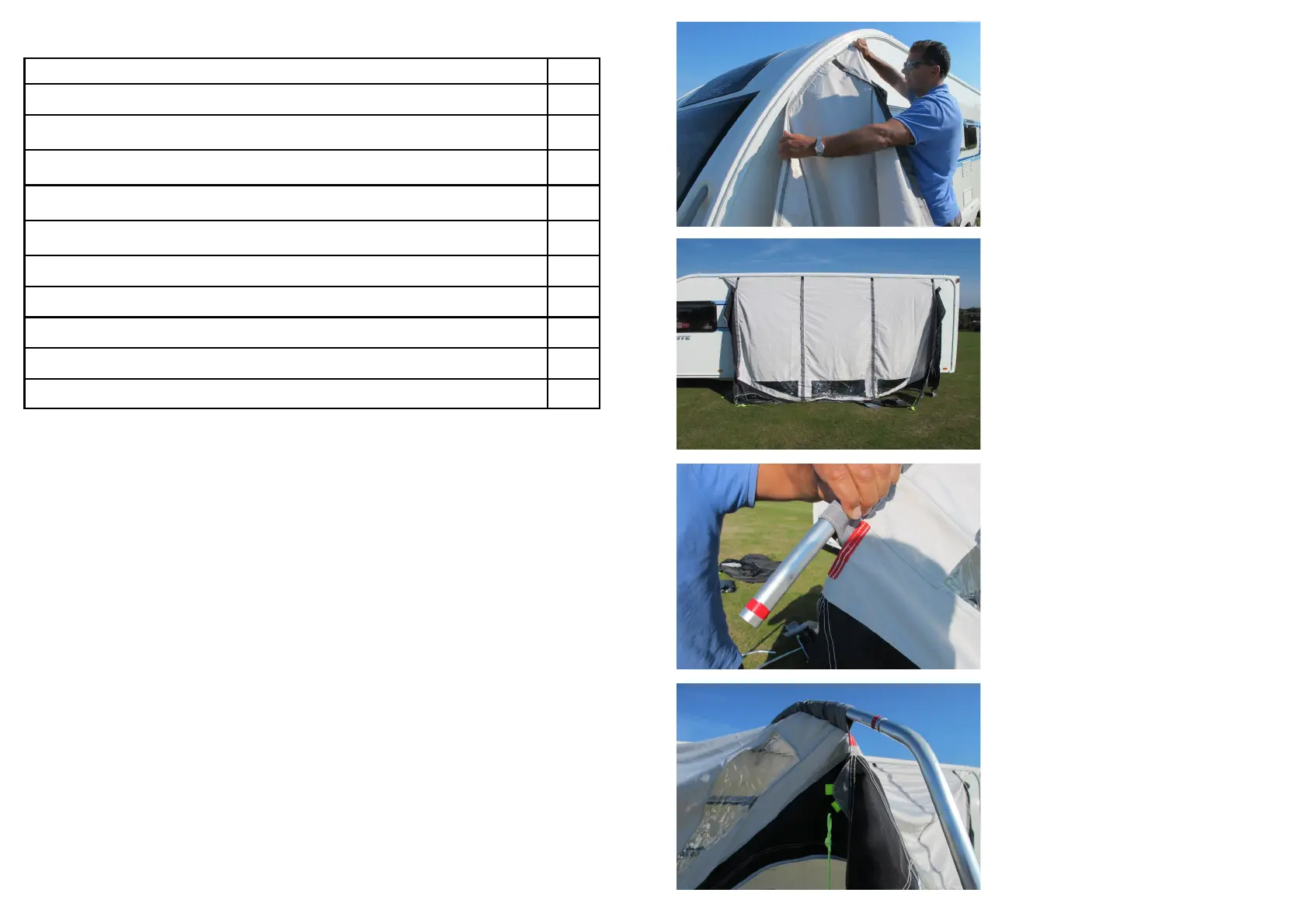 or awning carpet down before unpacking. Unpack the awning, separate and identify