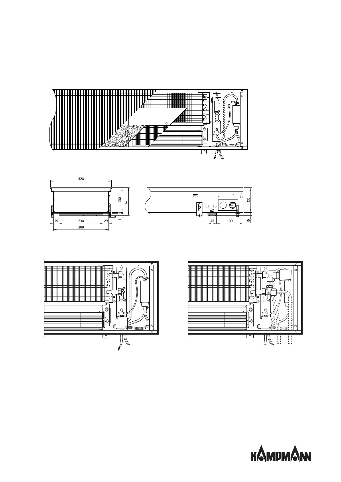 Fig.8: Example: Katherm HK 320, H = 130mm, 2-pipe, increased trench height with condensate pump*
