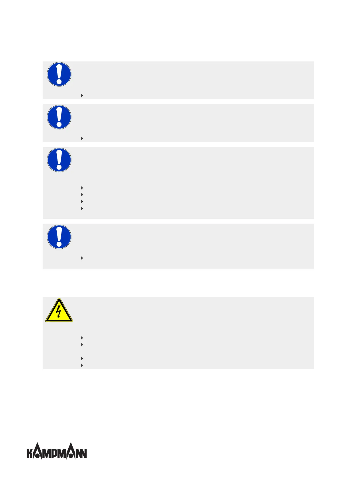 Never operate the unit above electrical equipment (such as switch cabinets, computers or other electrical