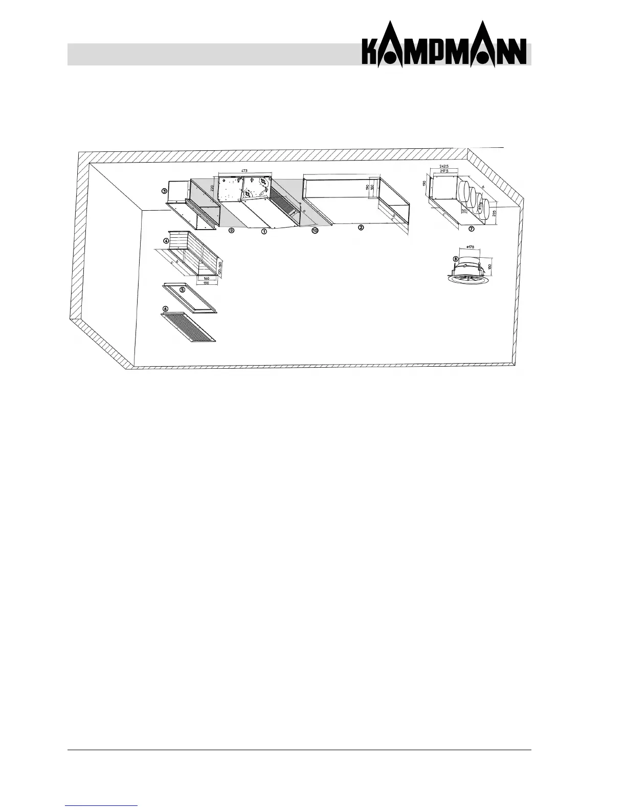 Short bend, e.g. with ceiling arrangement as a transition from horizontal to vertical ductwork