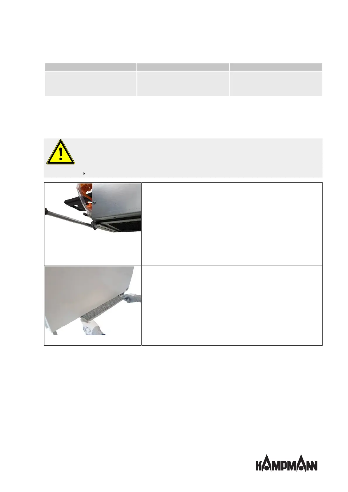 With units with casing with air inlet grille, the grille needs to be dismantled before changing the filter. Then proceed as fol-