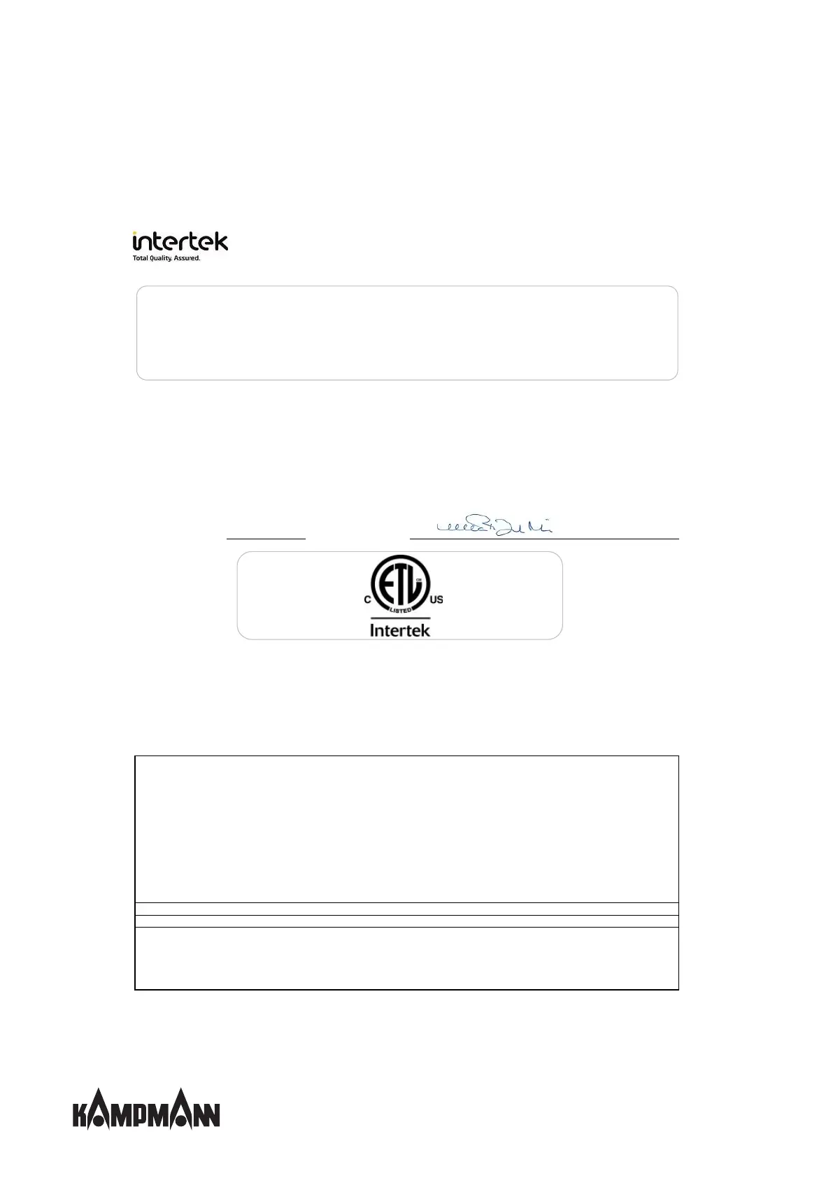 This Authorization to Mark is for the exclusive use of Intertek's Client and is provided pursuant to the Certification agreement between Intertek and its Client. Intertek's responsibility and liability are