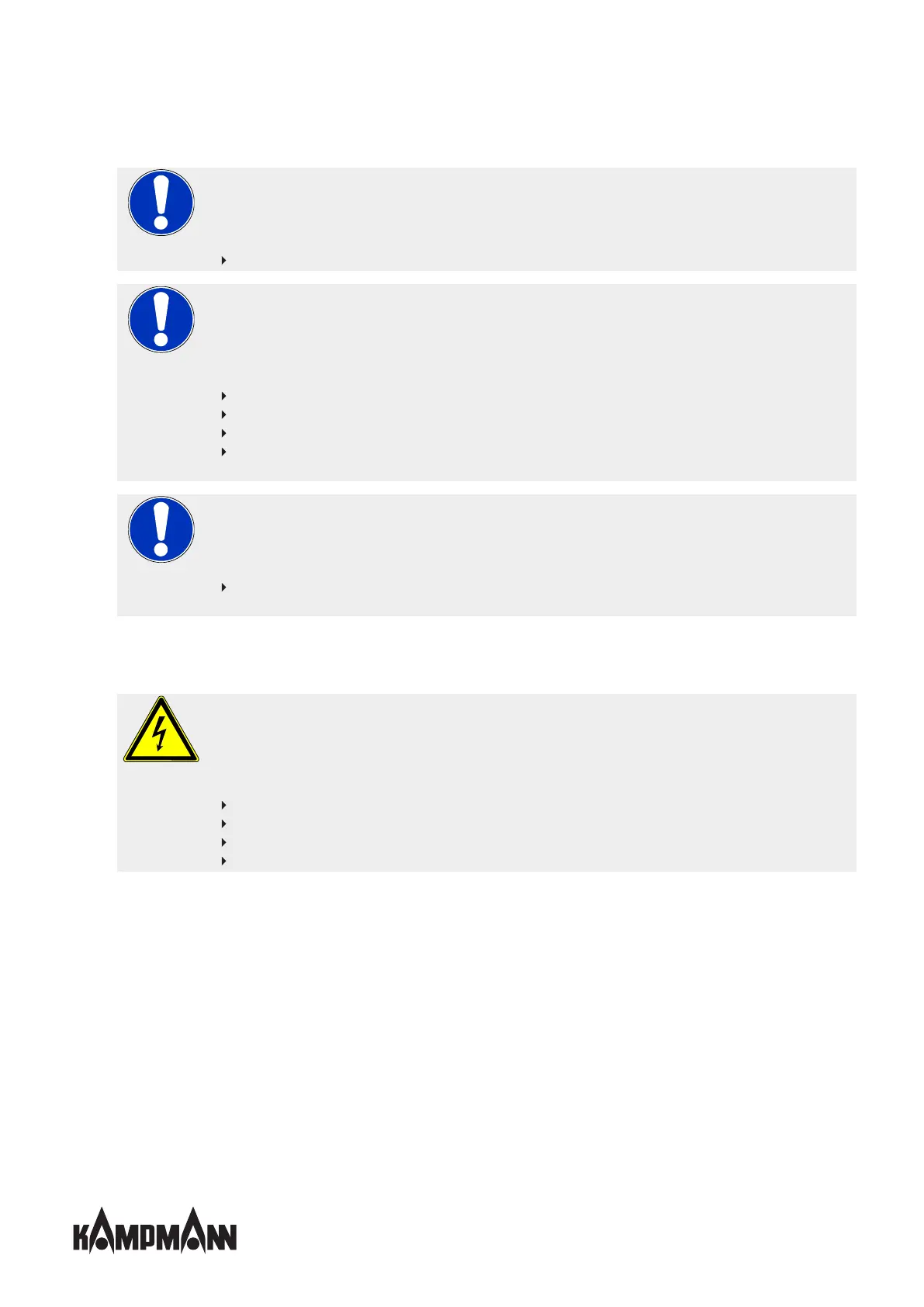 Never operate the unit above electrical equipment (such as switch cabinets, computers or other electrical