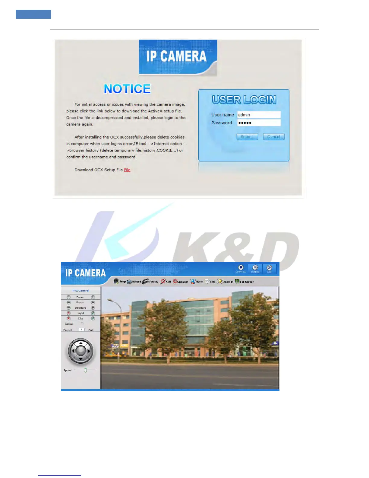 In the Live view interface, users can do operations like Snapping, Recording, Playback, Call, Listen, Clear