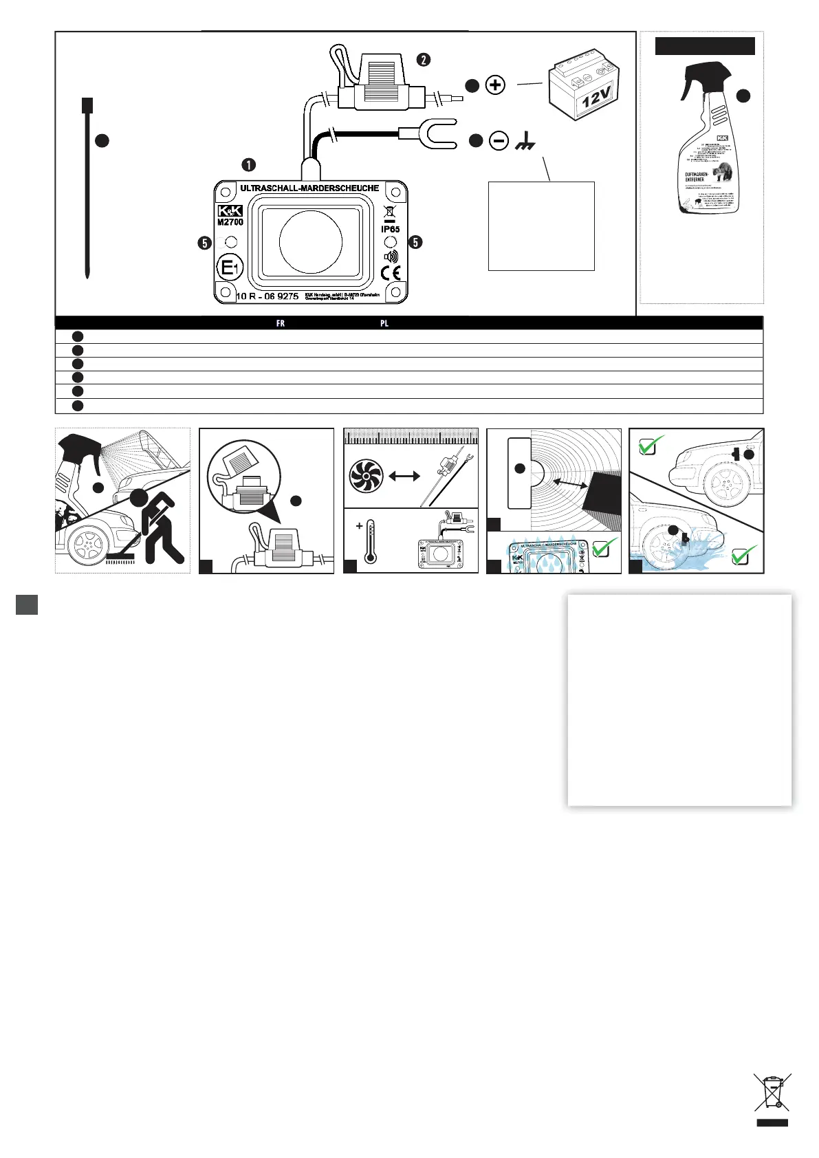 • Marderabwehrgerät stets vor übermäßiger Hitze schützen und Verschmutzungen vermeiden bzw. beseitigen.