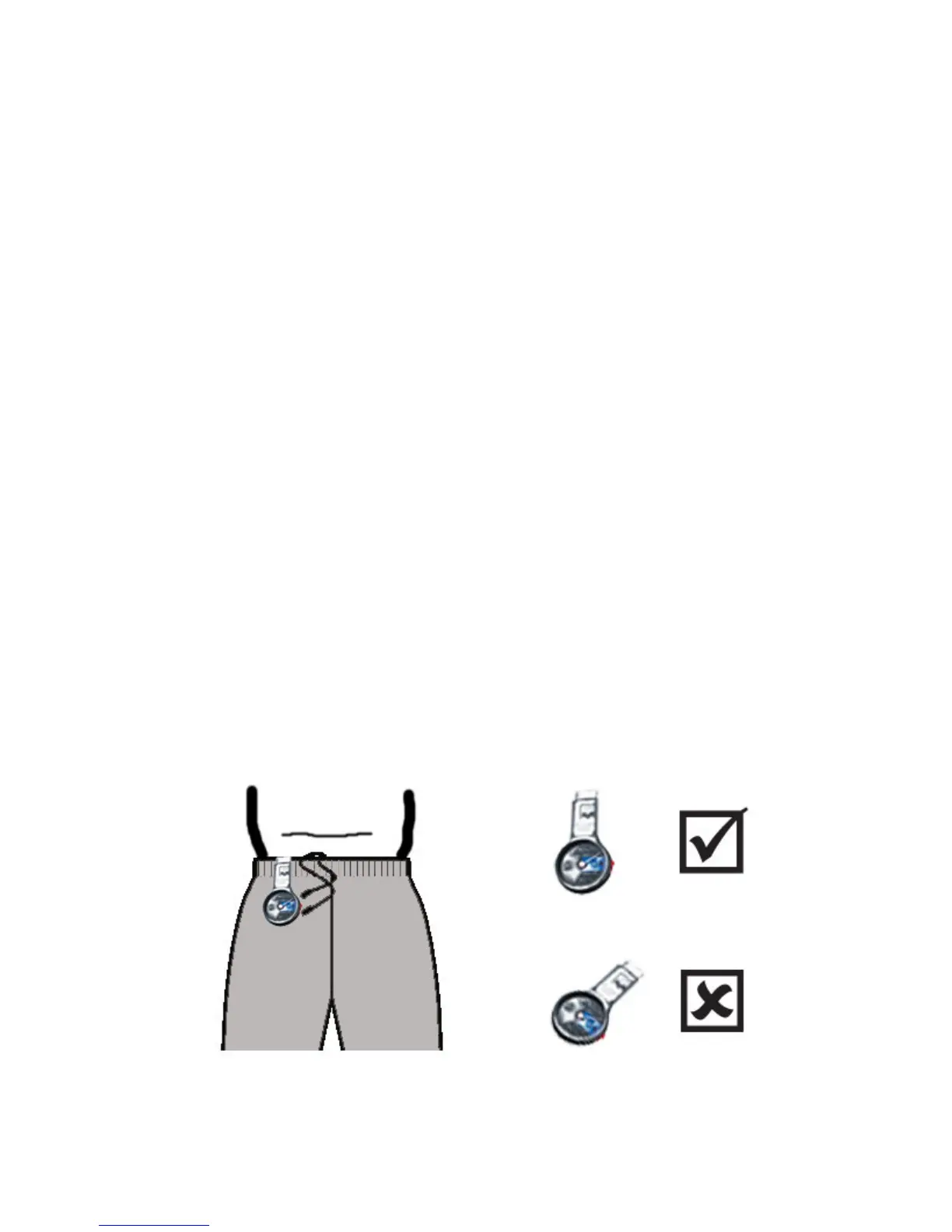 be attached: - at waistband or coatband - at belt
