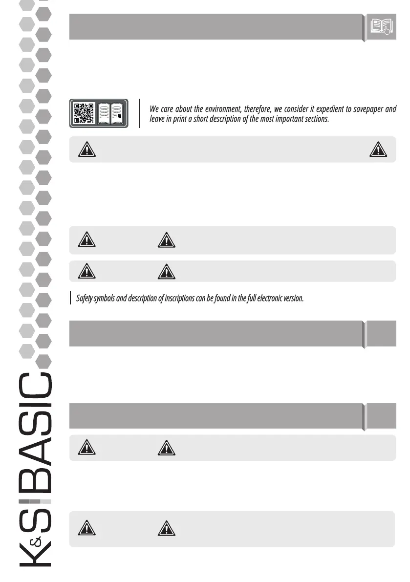 Thank you for your purchase of K&S Basic products. This manual contains a brief description of safety, use