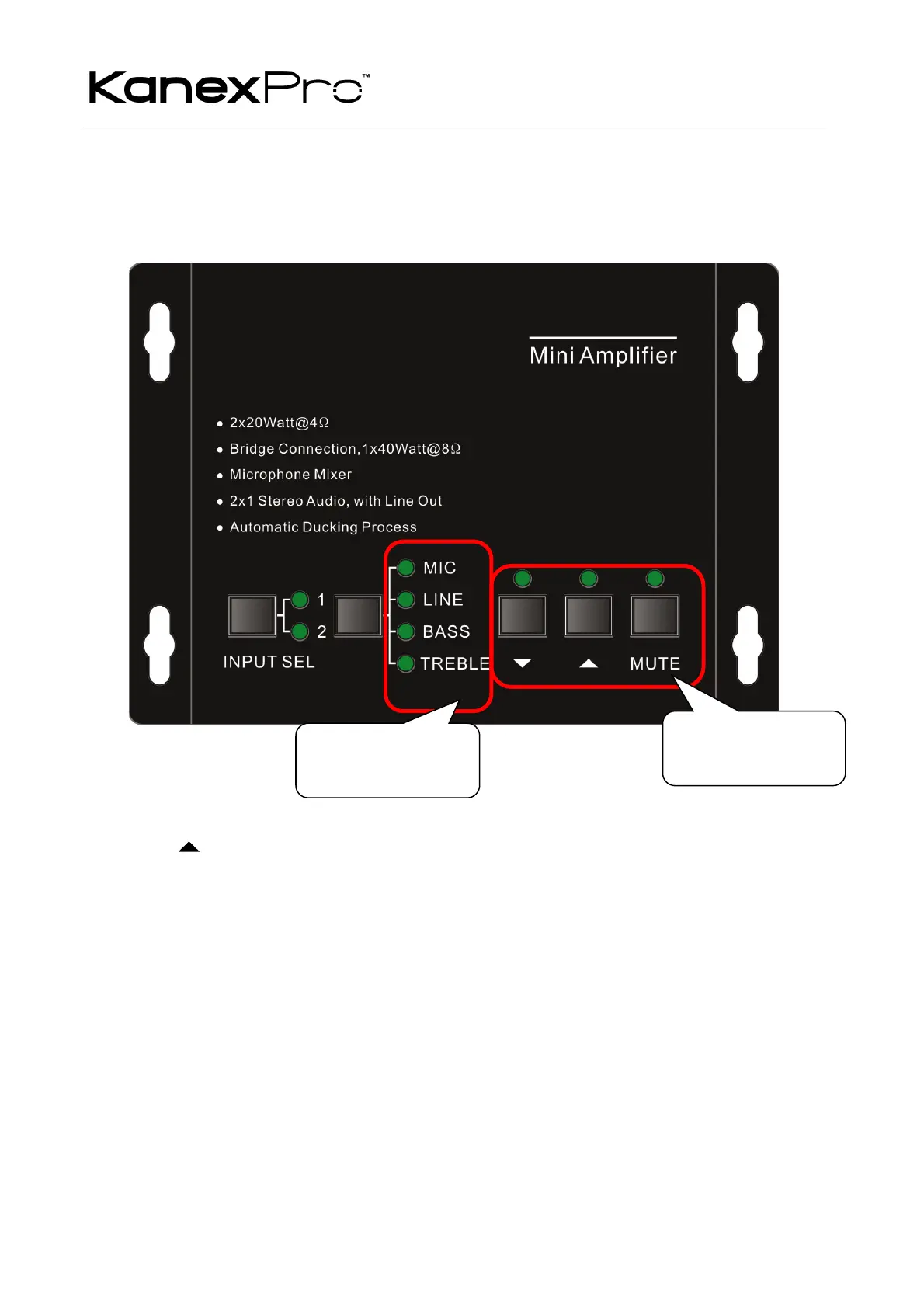 The buttons, and controlled up/down/mute will select the MIC Volume/LINE bass/LINE treble by the function