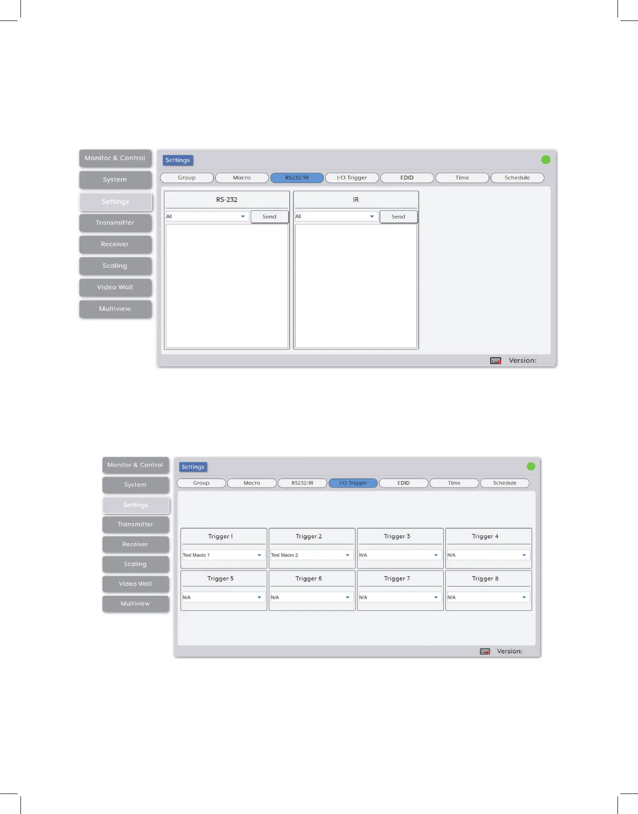 3. RS232/IR: This section provides a way to manually send individual RS- 232 or IR