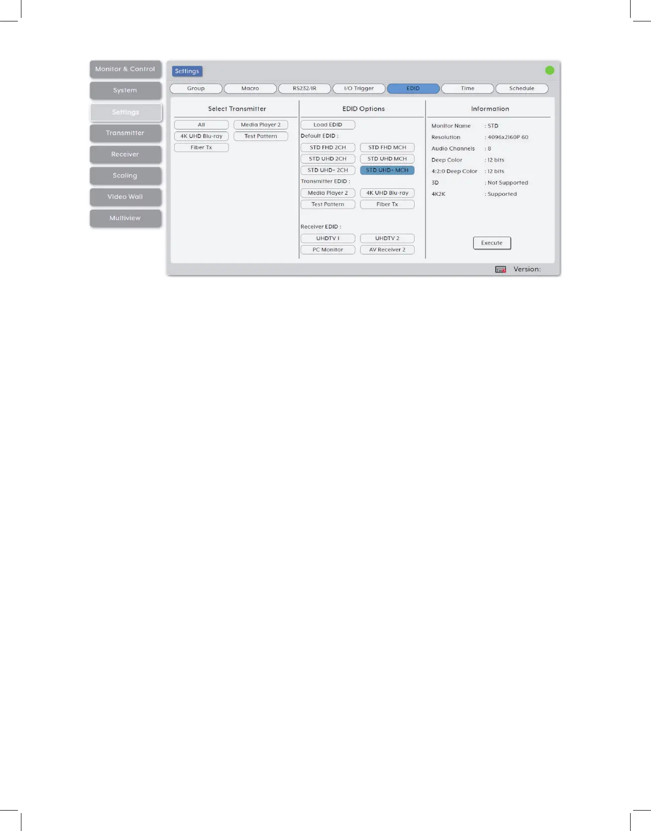 then select the transmitter(s) to copy the EDID to. Click the “Execute” button in the