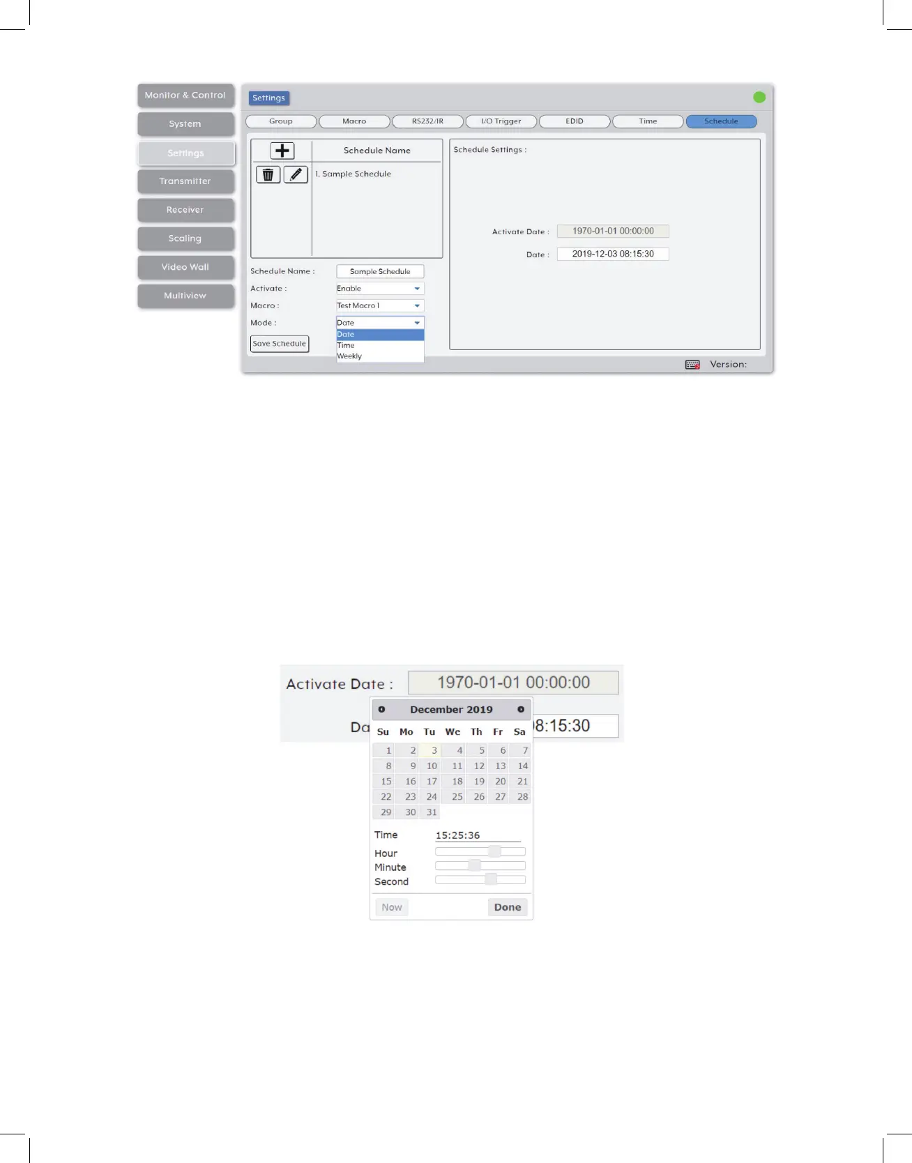 Activate Date: Clicking on the date field will open the calendar entry window. Select the