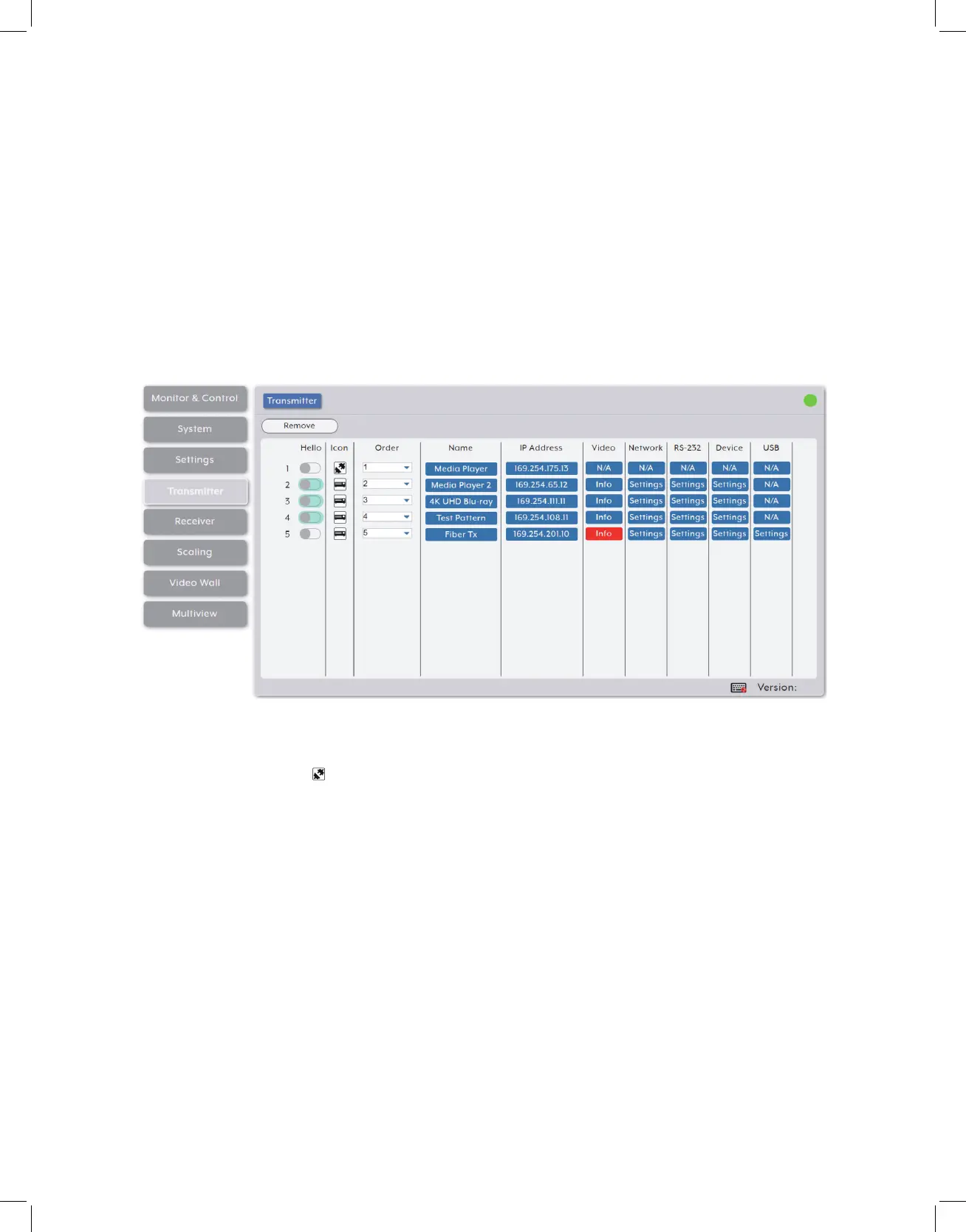 • Remove: Click on this button to remove any transmitter from the list that has the