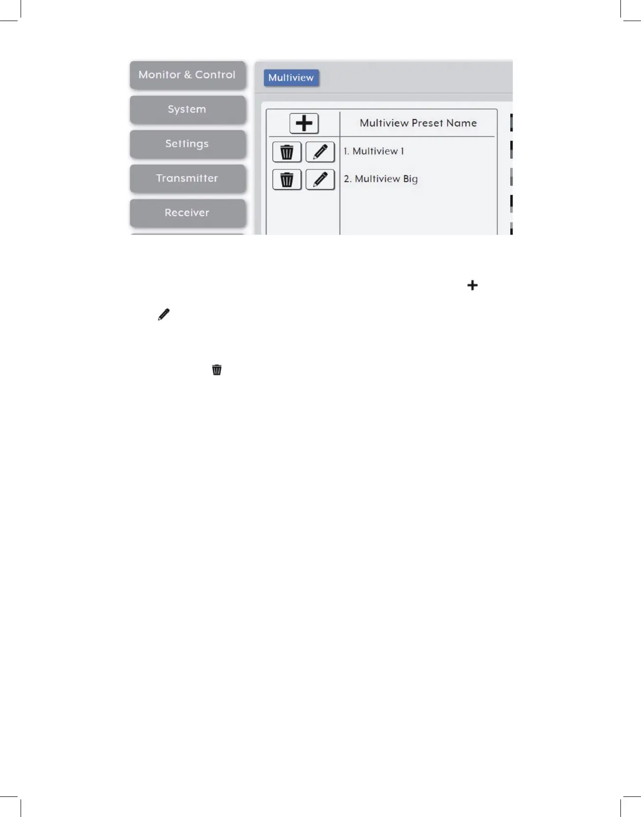 Note: Deleting a multiview preset will not disable the multiview output it described if it is currently