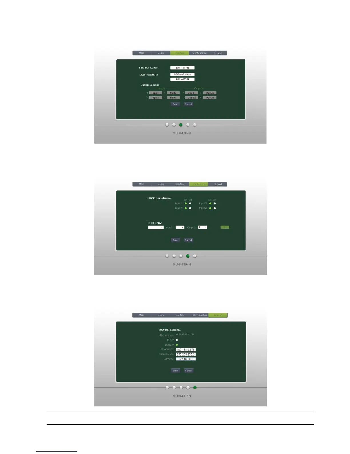 Configuration: Set HDCP Cmpliance status for every input, and manage EDID. See