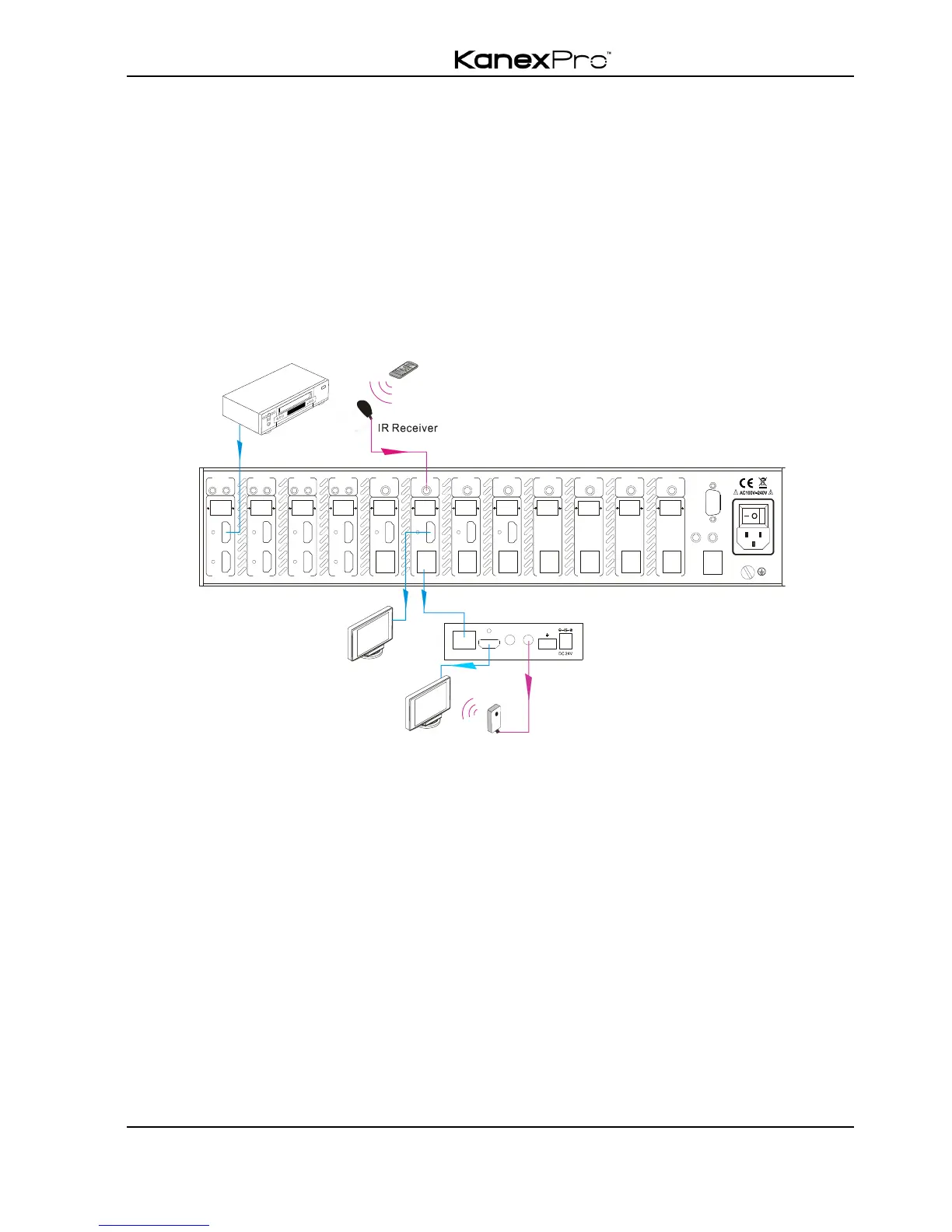 The IR signal received from IR ALL IN port will be transmitted to all the eight far-end