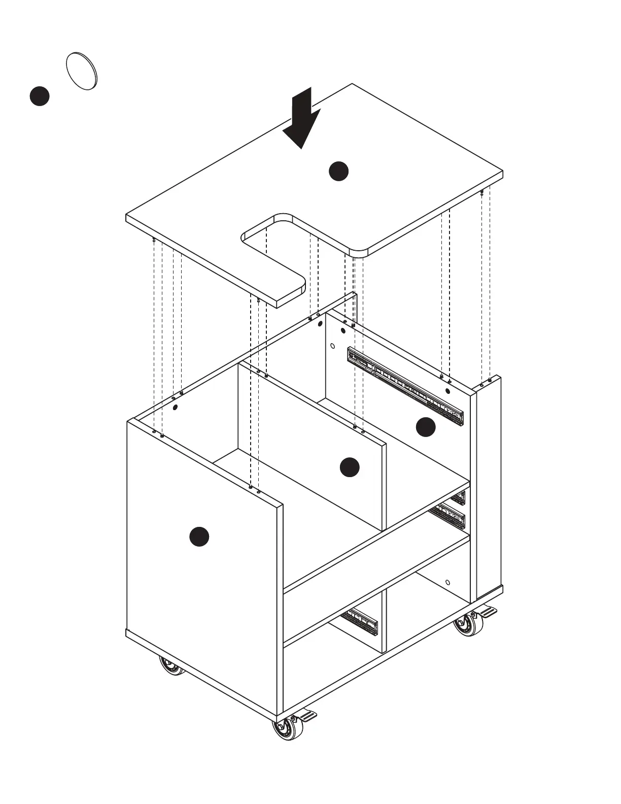 of the cabinet, inserting cam bolts into cam locks,