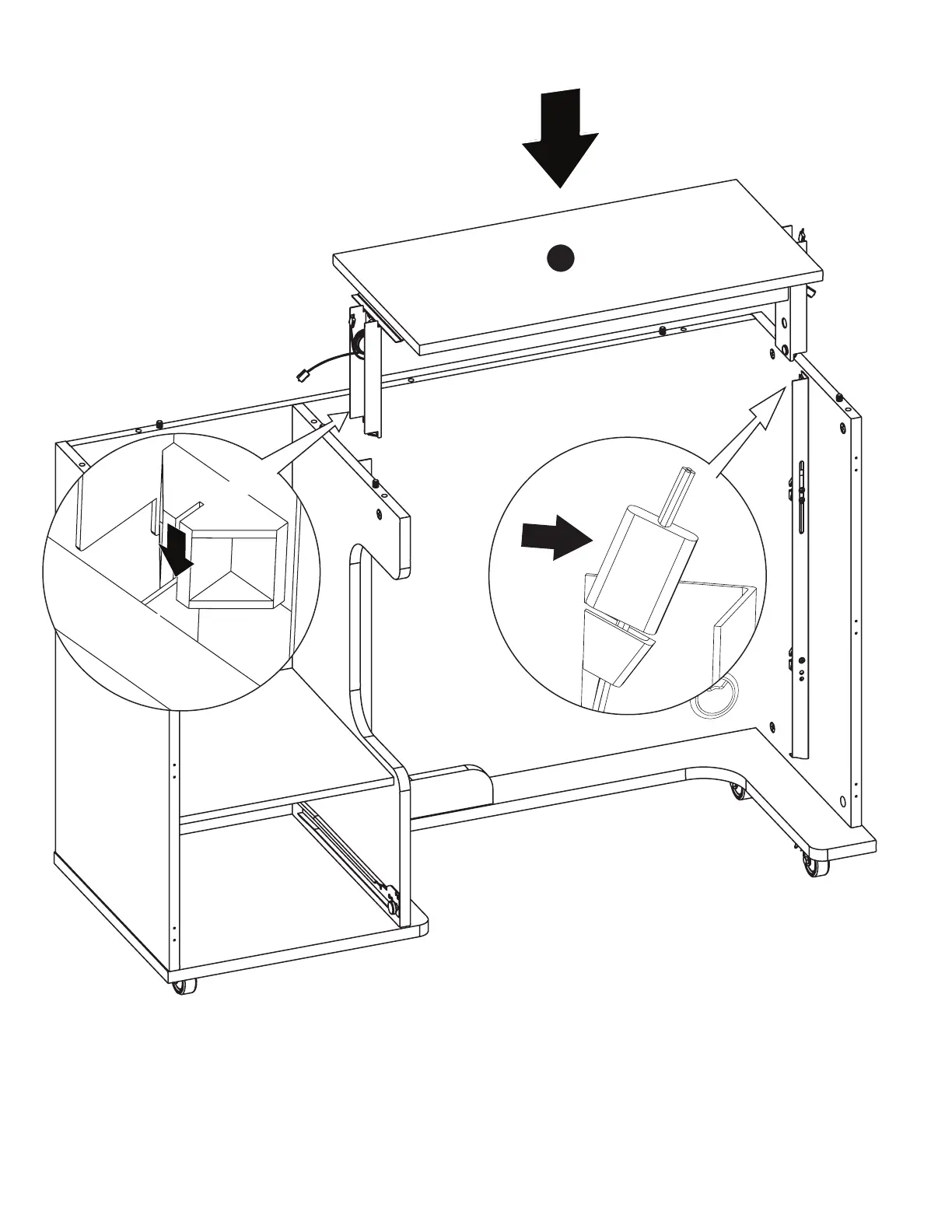 Guide Lift onto Lift Rails using plastic guides. Insert ends of cable into rail tabs; make sure the cable is hooked into the rail
