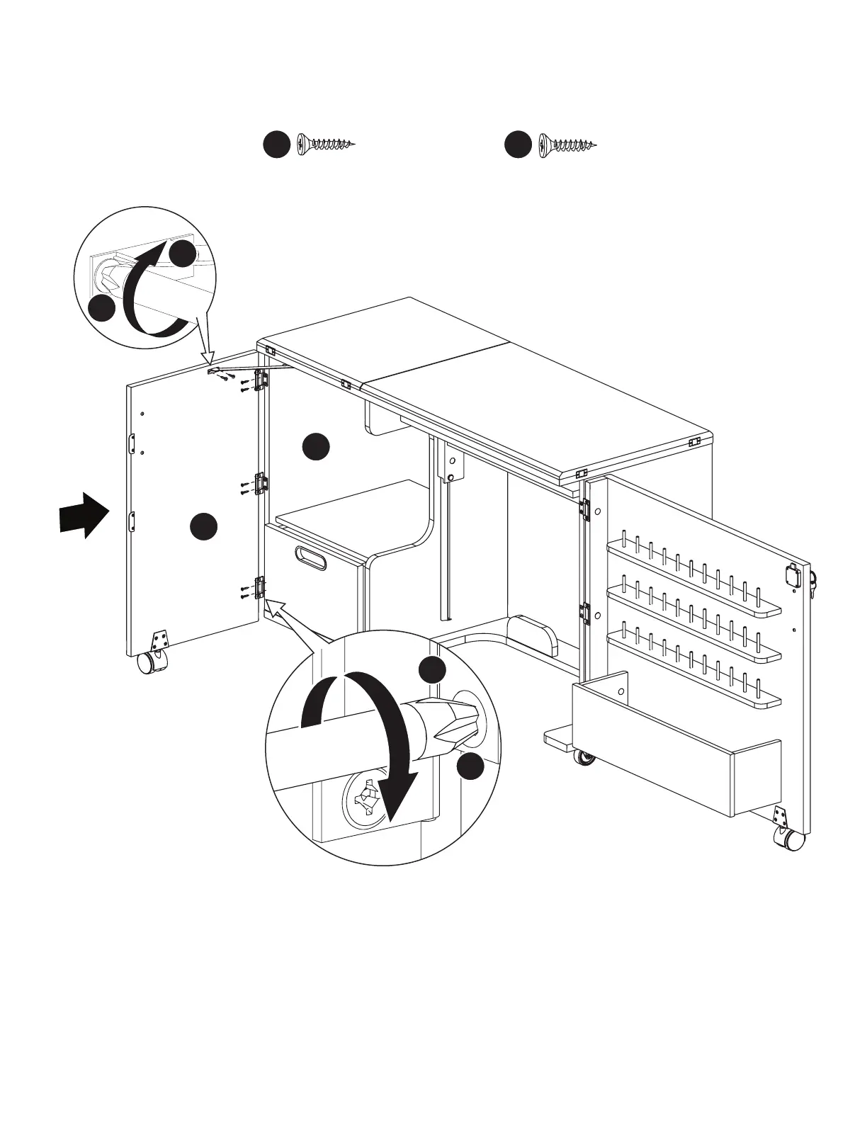 Attach h2 Flush Hinges on Panel V1 to Panel X with s2 Screws.
