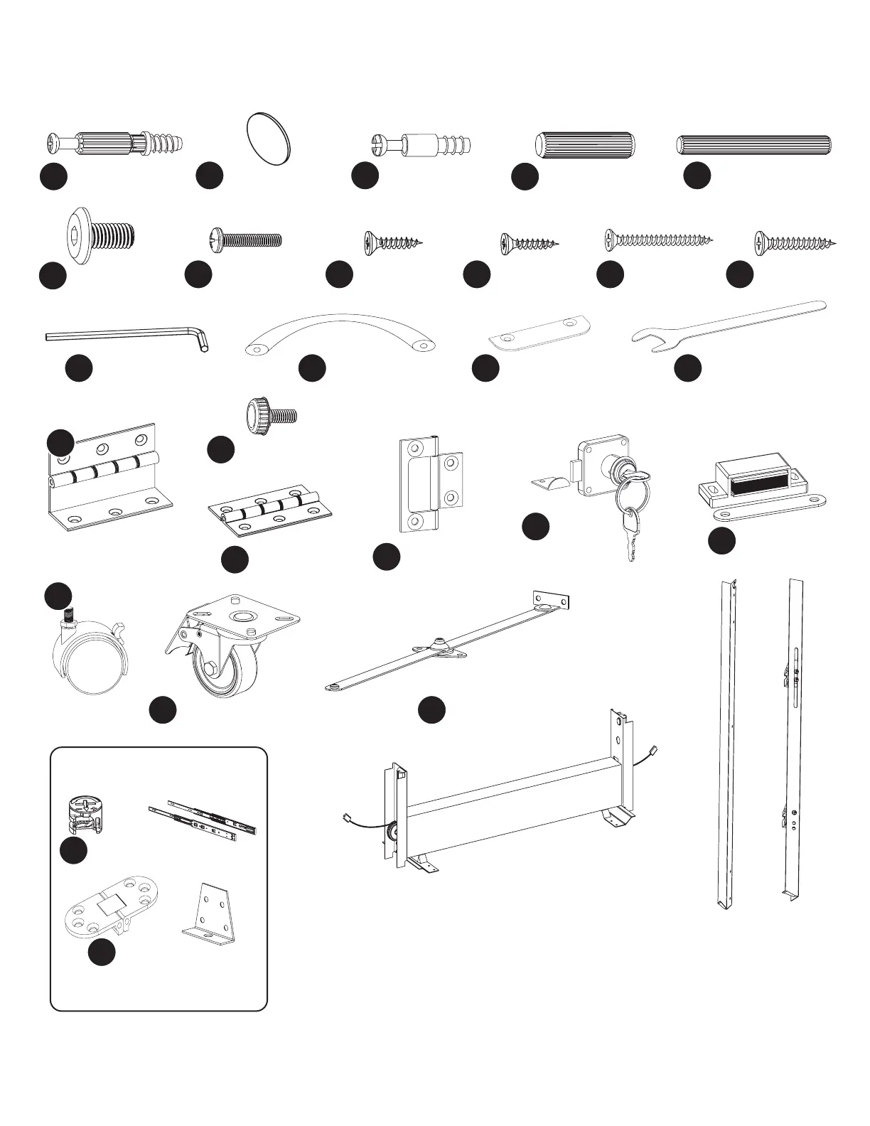 TIP: Keep all the parts in their individually labeled bags. This will make finding parts easier as you assemble your cabinet.