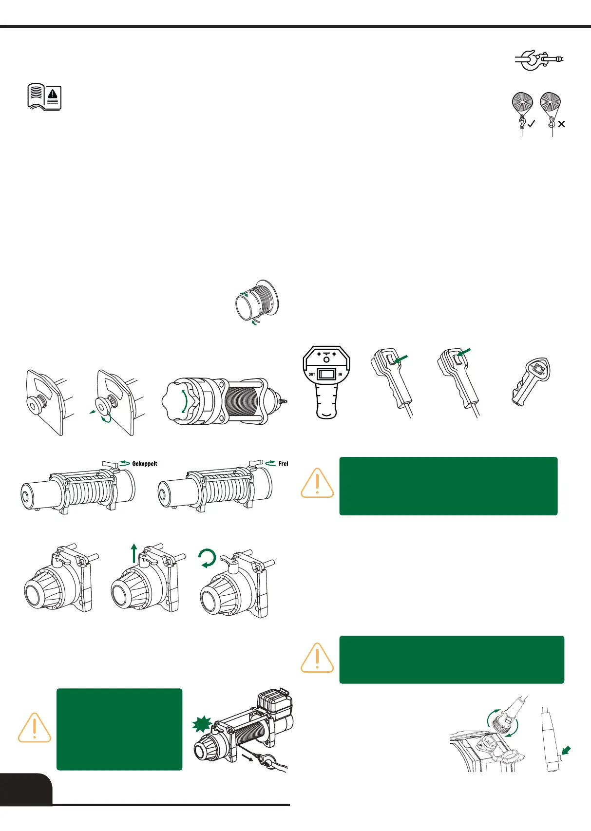 iben! Das Seil nicht mit Hilfe des Motors abwickeln, sondern